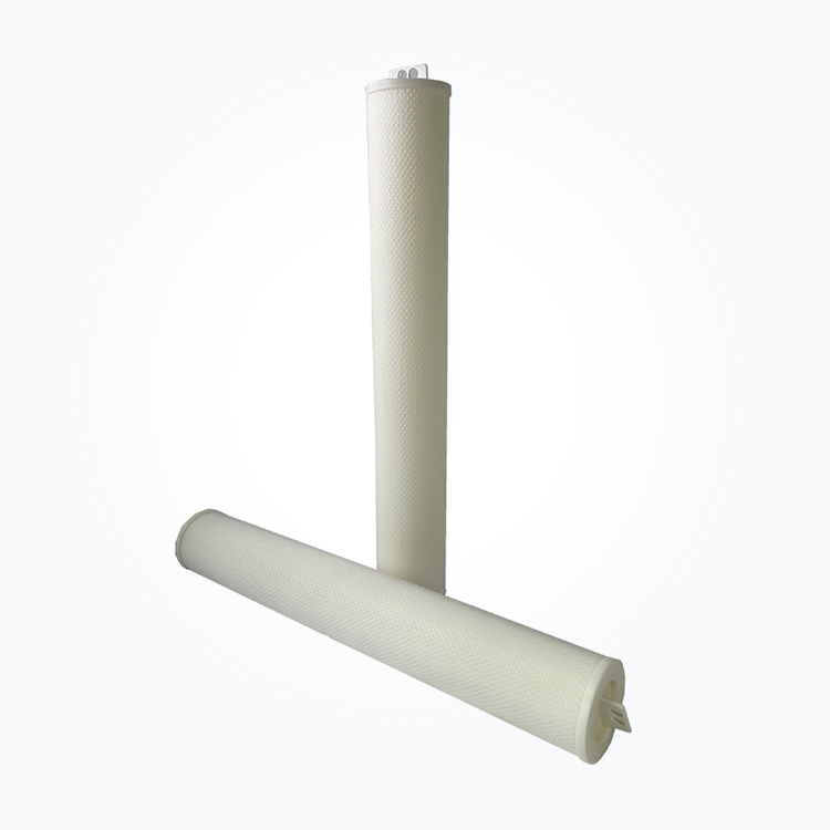 Elemen penapis aliran tinggi menggunakan polipropilena dalam dan membran serat kaca sebagai bahan penapis.